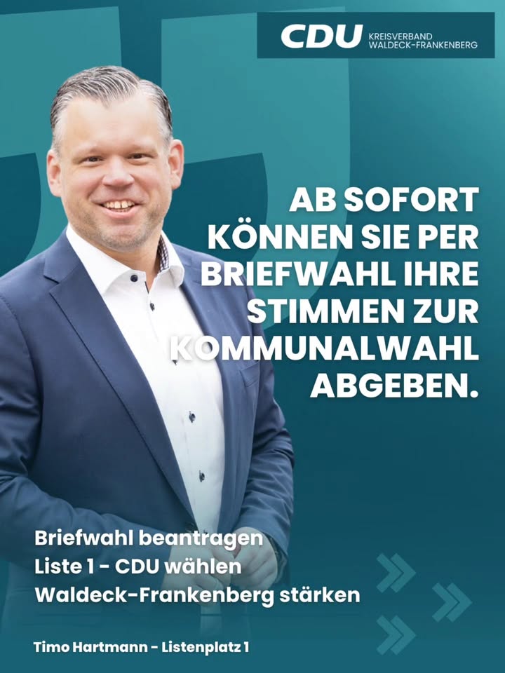 Du willst bequem von zu Hause wählen? Dann nutz die Briefwahl.📌 Beantragung der Briefwahlunterlagen ist nur bis zum 10. März möglich.📬 Wenn du deine ausgefüllten Unterlagen per Post zurückschickst, denk daran: Die Post braucht ein paar Tage. Also unbedingt frühzeitig losschicken.Mit einer starken CDU sorgst du für Verlässlichkeit, Verantwortung und eine gute Zukunft vor Ort.