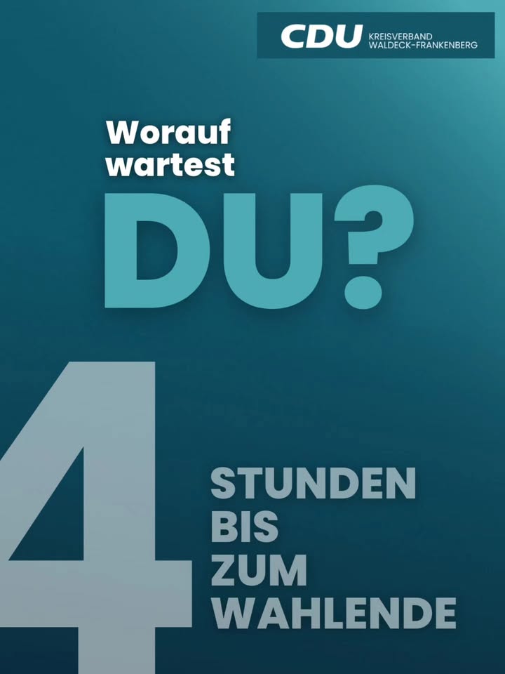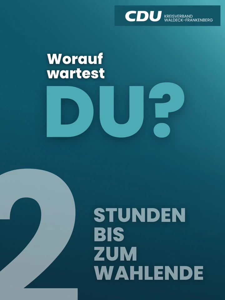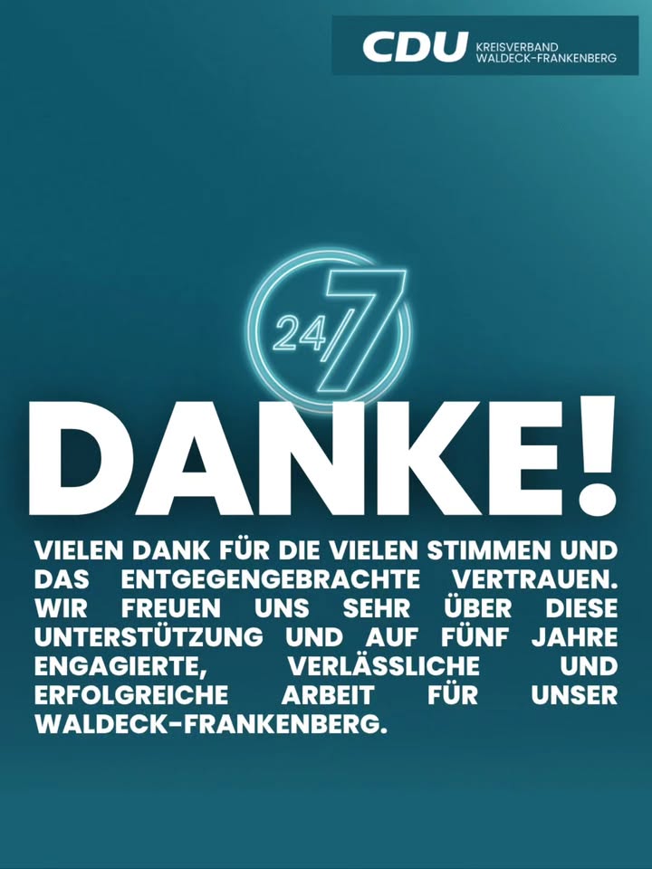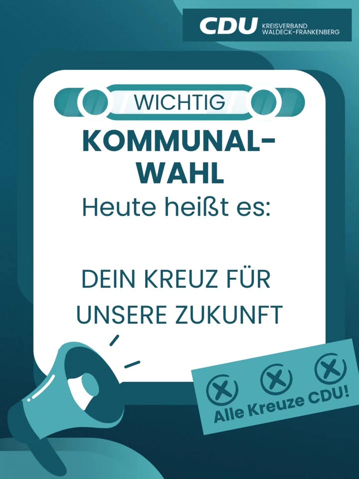Wir arbeiten jeden Tag daran, unseren Landkreis Waldeck-Frankenberg weiter nach vorne zu bringen. Mit klaren Ideen, Verantwortung und dem Blick für die Anliegen der Menschen vor Ort wollen wir unsere erfolgreiche Arbeit fortsetzen. Gemeinsam für eine starke Zukunft unseres Landkreises.Deswegen: Am 15 März alle Kreuze CDU!