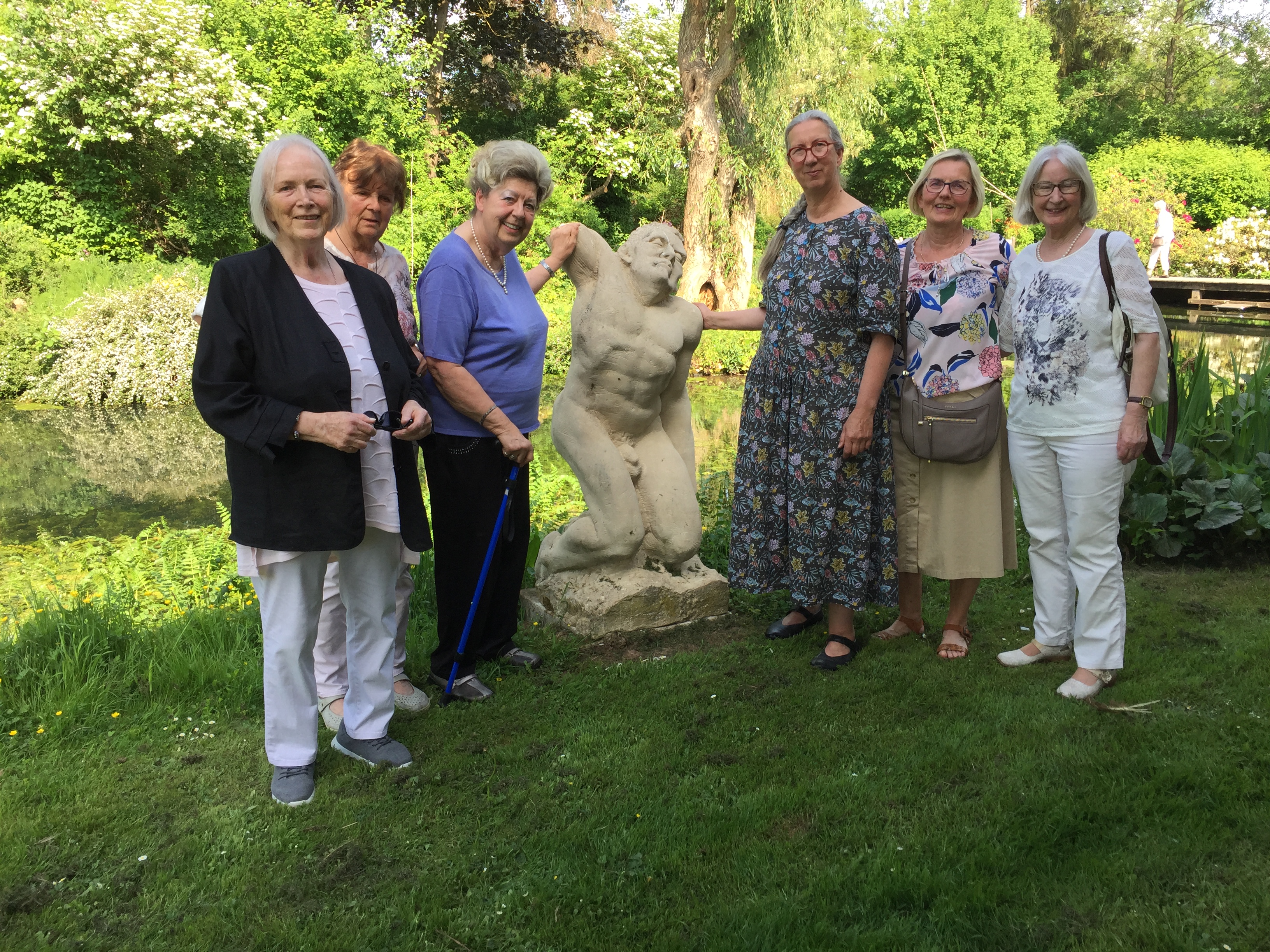 Die Frauen Union Bad Arolsen Korbach besuchte das Bildhauer Atelier Bohrmann & Roth in Grebenstein. Besonderen Eindruck machte das Gartenparadies, das die beiden Künstler rund um Haus und Atelier geschaffen haben. Viele Skulpturen von Karin Bohrmann und ihrem Mann Georg Roth fügen sich harmonisch in den Garten mit seinem alten Baumbestand und einem naturbelassenen Teich ein. Auch die Fülle von Zeichnungen und Aquarellen im Atelier beeindruckten die Gäste. Gisela Hessel wies darauf hin, dass die vor kurzem in Kassel aufgestellte lebensgroße Bronzestatue von Elisabeth Selbert von Karin Bohrmann stammt. Sie soll erinnern an eine von vier Müttern des Grundgesetzes, die gegen eine starke männliche Mehrheit den Satz „Männer und Frauen sind gleichberechtig“ durchgesetzt hat. Ein gemütliches Beisammensein mit Kaffee und Kuchen rundete den Tag ab.